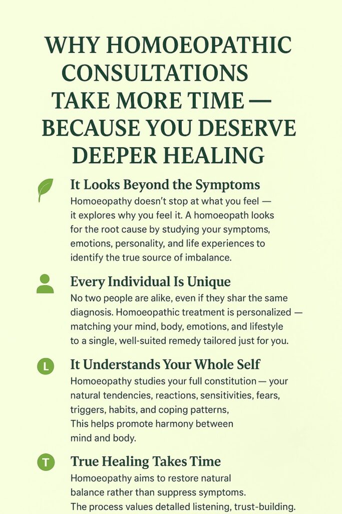 Why Homoeopathic Consultations Take More Time — Because You Deserve Deeper Healing
